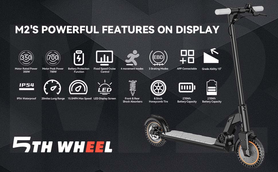 The 5TH WHEEL M2 Folding Electric Scooter offers a range of features that make it a versatile and efficient mode of transportation.