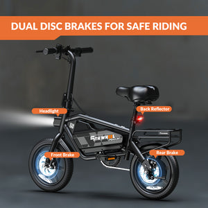 Front and rear disc brakes deliver smooth, responsive stopping power in all weather conditions—ensuring safe and confident rides through busy city streets.