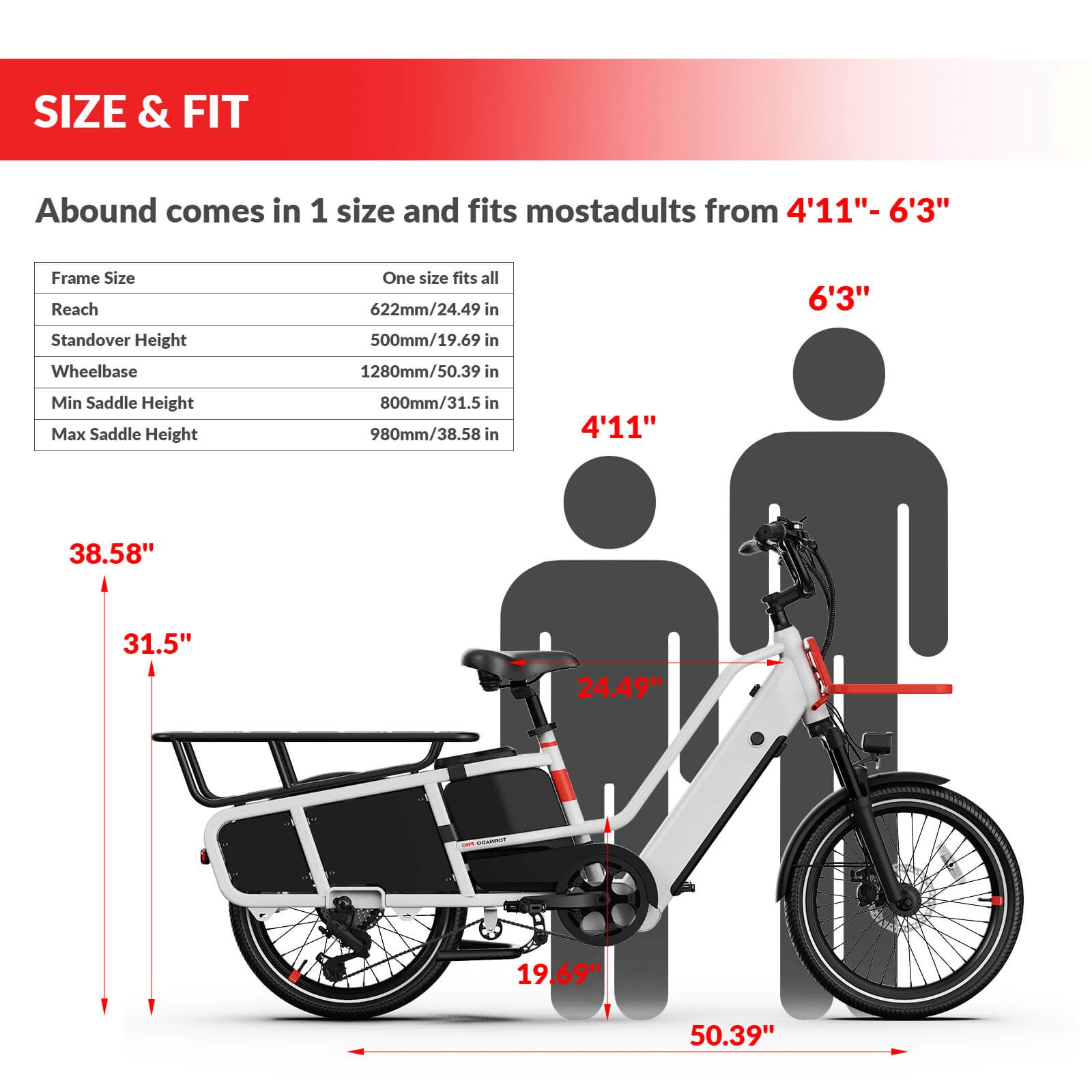 | Min Saddle Height | 800mm / 31.5 in |