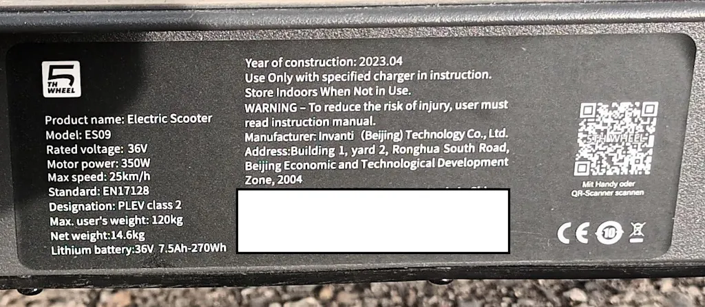 | Rated Power | 350W Hub Motor |